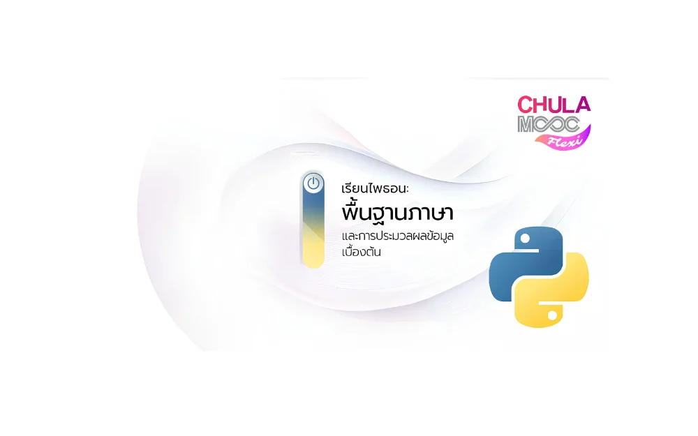 เรียนภาษา Python ตั้งแต่เริ่มต้น เพื่อให้ผู้เรียนแม้จะไม่เคยเขียนโปรแกรมมาก่อน สามารถนำความรู้ที่ได้ไปเขียนโปรแกรมบน Jupyter Notebook เพื่อประมวลผลข้อมูลในบริบทต่าง ๆ ได้ ผู้เรียนจะได้ทำความเข้าใจประเภทของข้อมูลและการประมวลผลที่ถูกต้อง ผนวกกับการควบคุมผังการทำงานของโปรแกรม การเรียกใช้งานไลบรารีต่าง ๆ เพื่อสร้างโปรแกรมประยุกต์อย่างง่าย ๆ ได้ รวมถึงได้รับพื้นฐานการออกแบบและเขียนโปรแกรม Python ให้สามารถใช้งานซ้ำได้อย่างคุ้มค่าผ่านการใช้ฟังก์ชันและโมดูล หลังจากผู้เรียนจบรายวิชานี้ ผู้เรียนจะมีความพร้อมในการเรียนรู้รายวิชาต่อไปในซีรีส์คอร์สออนไลน์ “เรียนไพธอน” จาก Chula MOOC นี้ ซึ่งผู้เรียนจะได้เรียนรู้เเนื้อหาที่ครอบคลุมการใช้ไลบรารี NumPy ที่เป็นที่นิยมในการวิเคราะห์ข้อมูล (Data Analytics) และการแสดงข้อมูลด้วยภาพ (Data Visualization) ด้วย Matplotlib ต่อไป