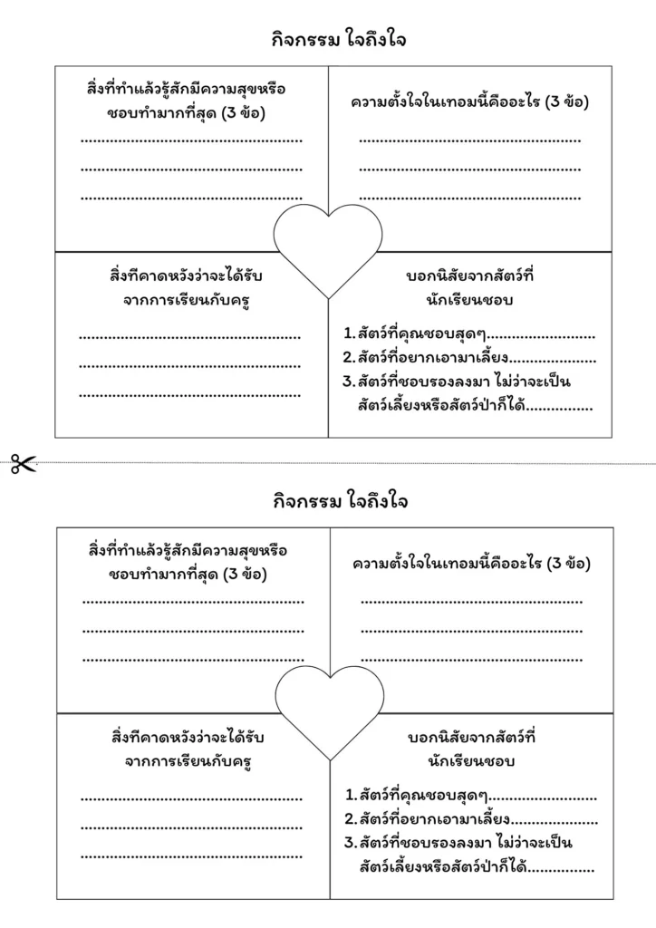 กิจกรรมใจถึงใจ เป็นกิจกรรมที่เน้นการสร้างความสัมพันธ์ที่ดีระหว่างครูและนักเรียนตั้งแต่ต้นคาบเรียน โดยเฉพาะในช่วงปฐมนิเทศ กิจกรรมนี้จะช่วยให้ครูได้ทำความรู้จักนักเรียนมากขึ้น สร้างบรรยากาศที่เป็นกันเอง และส่งเสริมความรู้สึกไว้วางใจซึ่งกันและกัน เปิดโอกาสให้นักเรียนได้แสดงความคิดเห็น ความรู้สึก และความต้องการของตนเอง ในขณะเดียวกันครูก็สามารถสื่อสารเป้าหมาย ความคาดหวัง และให้กำลังใจนักเรียนได้