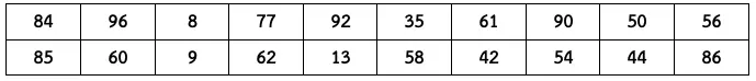 ให้เรียงลำดับตัวเลขในตารางด้านล่างนี้ จากน้อยไปหามาก
